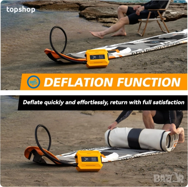 【Супер бързо надуване】Мощната електрическа SUP помпа с мощност 240 W надува 10,6-футова SUP дъска до 15 PSI само за 𝟱 𝗠𝗶𝗻𝘀, по-бързо от други помпи! Електрическата помпа за