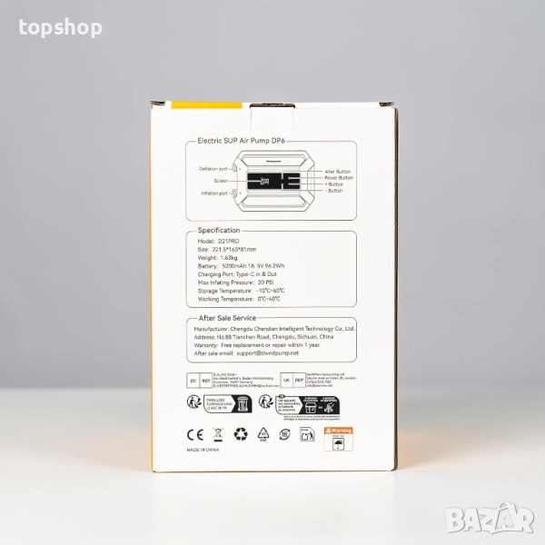 【Какво ще получите】Ще получите: Електрическа SUP помпа*1, Адаптери за клапани*7, Въздушен маркуч*1, Кабел Type-C*1, Щепсел за зареждане*1, Ръководство*1, Водоустойчива чанта*1. Всички въздушни помпи dwndpump се предлагат с 2-годишно покритие за ремонт или подмяна и специализирано обслужване на клиенти. Ако имате някакъв проблем при използването на нашите въздушни помпи, моля, свържете се с нас по всяко време.