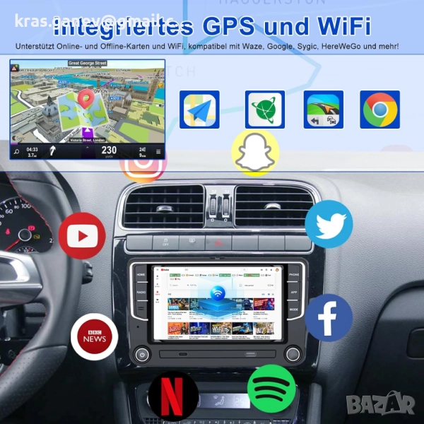 Основното Android устройство не само включва горепосочените функции, но предлага и допълнителни функционалности, като безжична връзка с Apple Carplay и съвместимост с Android автомобил. Това универсално устройство поддържа различни приложения, включително FM радио, WiFi достъп, смяна на повече теми и GPS навигация за лесно настройване с едно щракване.