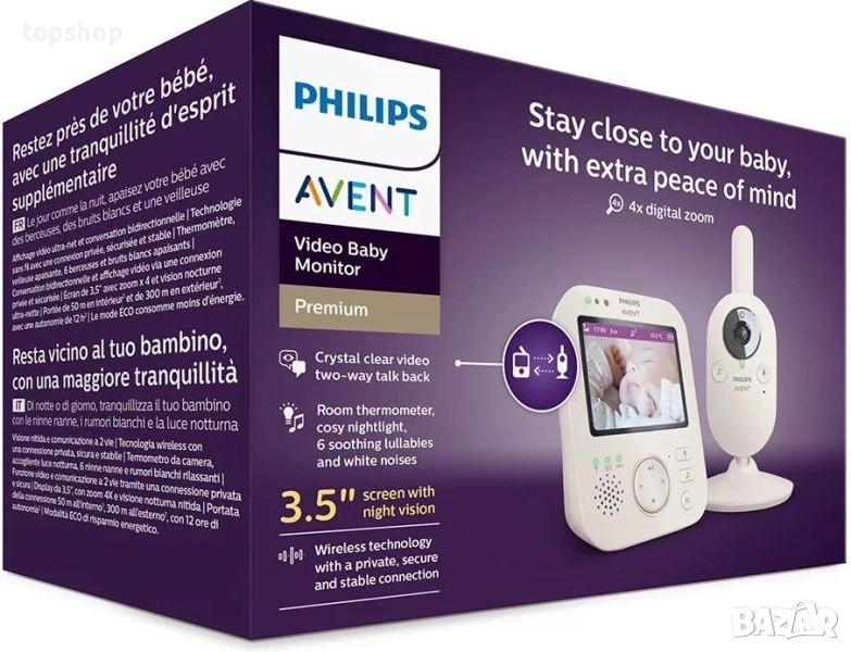 Дигиталният видеофон Philips Avent - SCD891/26 ще улесни родителите в ежедневните грижи за бебето и ще се погрижи за сигурността и спокойствието на мъника. Разполага с общо четири режима на действие - аудио, видео, VOX и ECO режим.