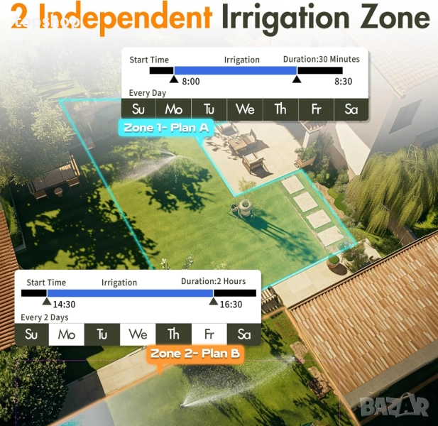 Diivoo Таймер за напояване с 2 зони, Програмируем таймер за маркуч за вода с 2 изхода за градина...
