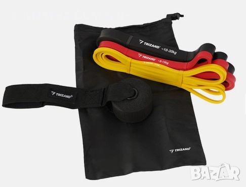 Комплект три ластика за тренировка с различно съпротивление. В известни вериги цената само за брой е 20 лв.