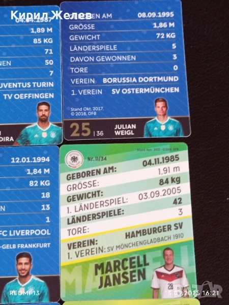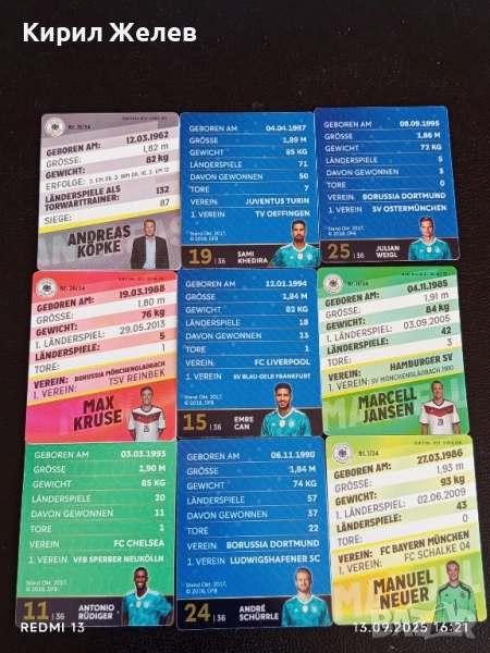 Колекционерски картички на футболисти ЕМРЕ ДЖАН, МАРСЕЛ ИАНСЕН, АНТОНИО РУДИГЕР 51005 → Обява 51702049
