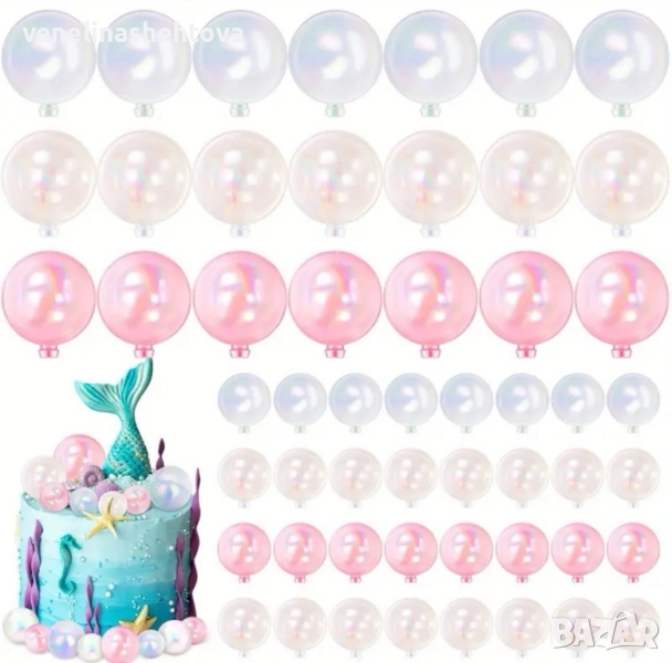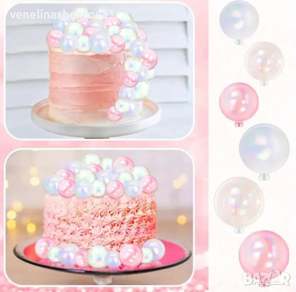 45 броя Прозрачни топчета бели прозрачни розови за декорация на торта → Обява 51702425