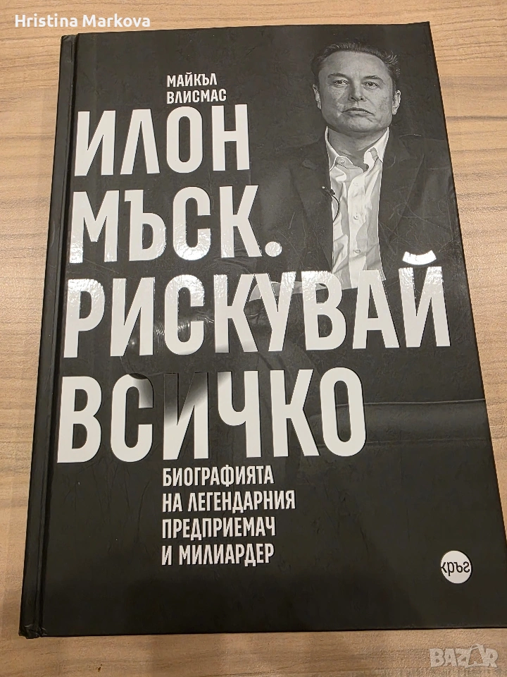 "Илон Мъск. Рискувай всичко", 259 стр., малко по-голям от стандартния формат с твърди корици. Без забележки. Корична цена 25 лв. Цена за теб 17 лв.