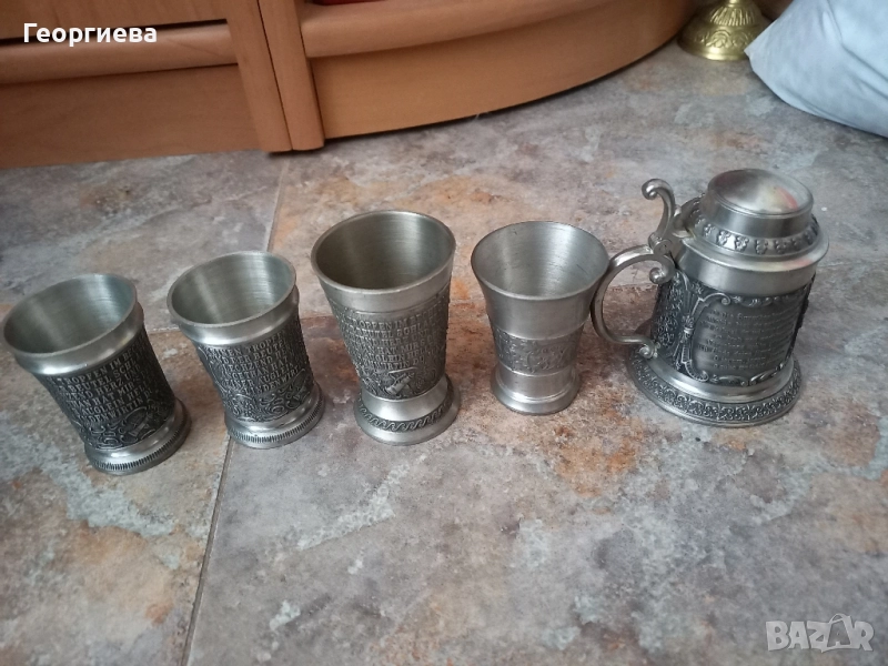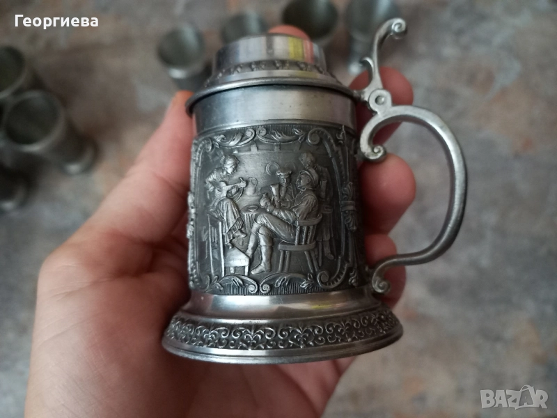 Оловно-цинкови немски чашки и малка халба → Обява 51702934