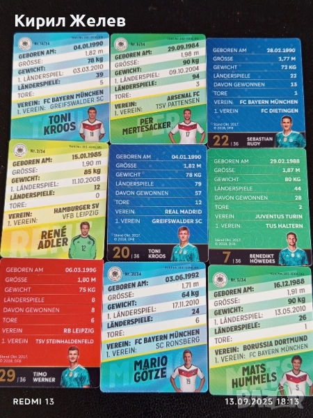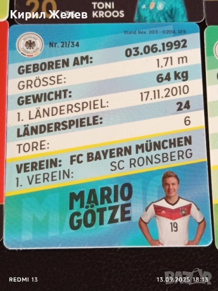 Колекционерски картички на футболисти ПЕР МЕРТЕЗАКЕР, ТОНИ КРООС,МАРИО ГЬОТЦЕ 51046 → Обява 51703196