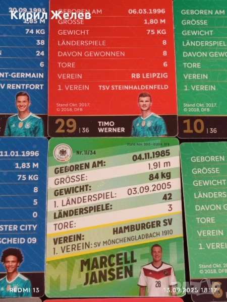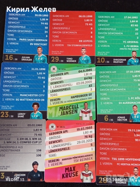 Колекционерски картички на футболисти ЛЕРОЙ САНЕ,ТИМО ВЕРНЕР,ЮЛИАН ДРАХСЛЕР 51028 → Обява 51703238