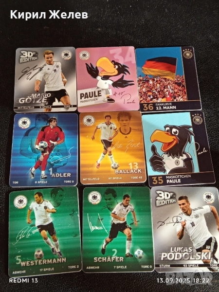Колекционерски картички на футболисти ЛУКАС ПОДОЛСКИ,МАРИО ГЬОТЦЕ, МИХАЕЛ БАЛАК 51022 → Обява 51703280