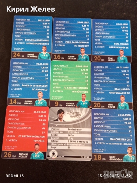 Колекционерски картички на футболисти ЮЛИАН ДРАХСЛЕР, АНДРЕ ШУРЛЕ,ТОНИ КРООС 51027 → Обява 51703537