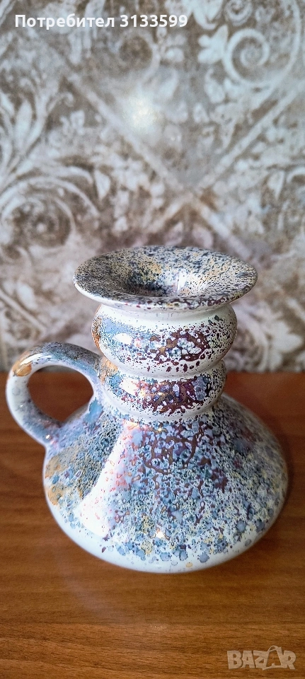 - Керамичен свещник с пъстра глазура и перлен блясък - винтидж или ретро декоративен елемент за дома ви. Височина: 9 см. ЦЕНА: 6 евро