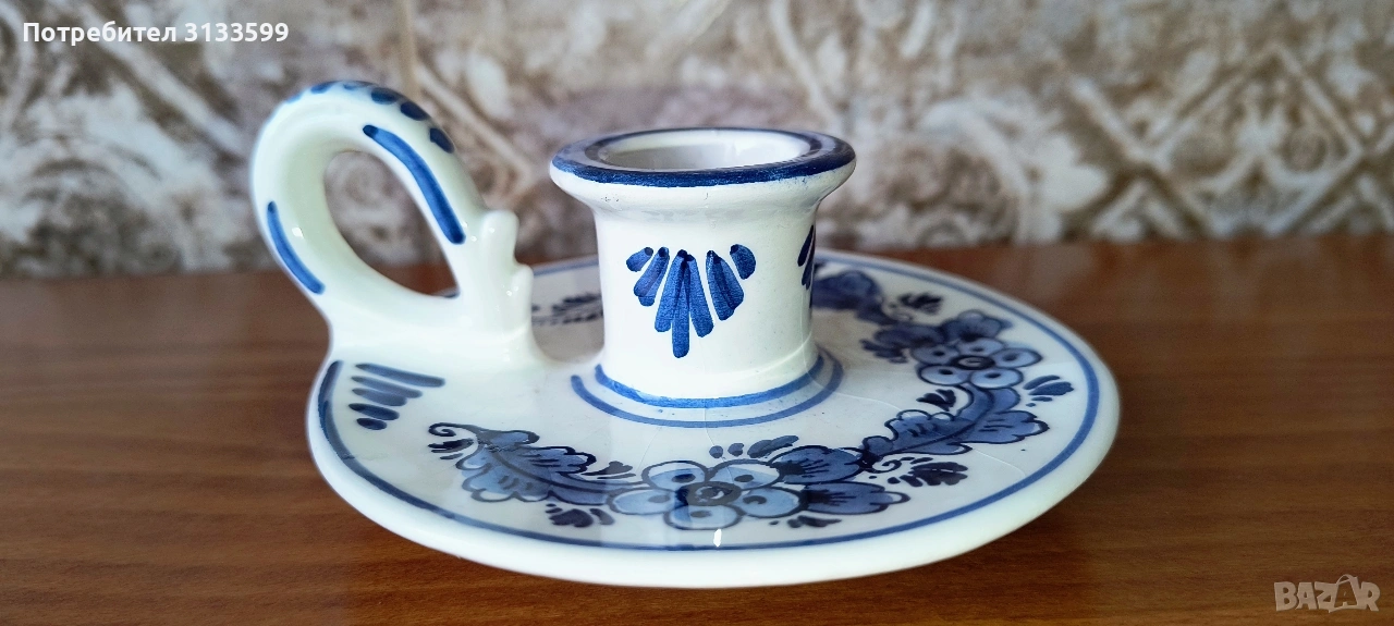 - Много красив ръчно изработен свещник от делфтски порцелан /Delft Blue/ - Холандия, оцветен в характерния за марката син цвят. Флоралните мотиви са ръчно изрисувани. ЦЕНА: 10 евро