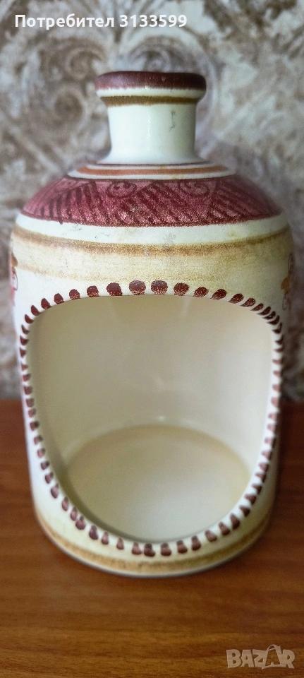 - Ръчно изработен и оцветен керамичен свещник на основаната през 1492 година австрийска компания Gmundner Keramik (GK), Austria. Височина: 15 см; шир. 9 см.