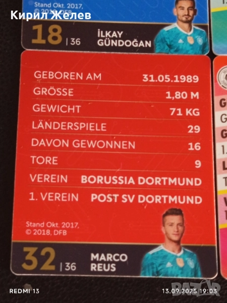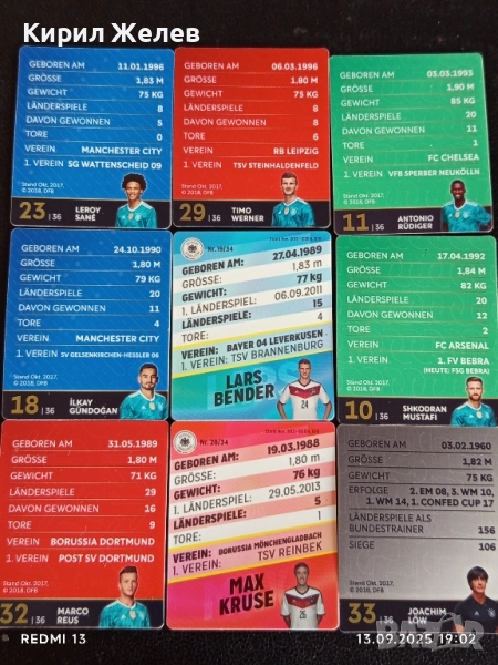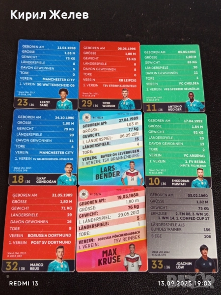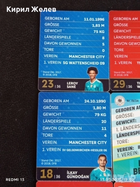 Колекционерски картички на футболисти ЛЕРОЙ САНЕ, ТИМО ВЕРНЕР, ИЛКАЙ ГЮНДОГАН 51040 → Обява 51703623
