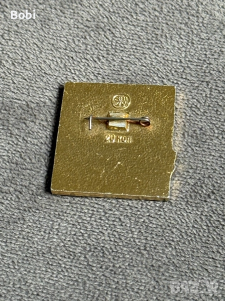 юбилейна значка за 40-годишнината от победата 1945–1985. На гърба ясно се вижда печат и надпис 20 коп (това е характерна маркировка — показва „номинална стойност/цена“ при производство или вид стойност), както и малко кръгло лого над закрепката.