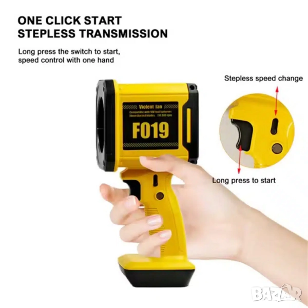 Безжичен турбовентилатор Violent Fan F019, 110 000 об/мин, 18V батерия с функция пауърбанк и фенер