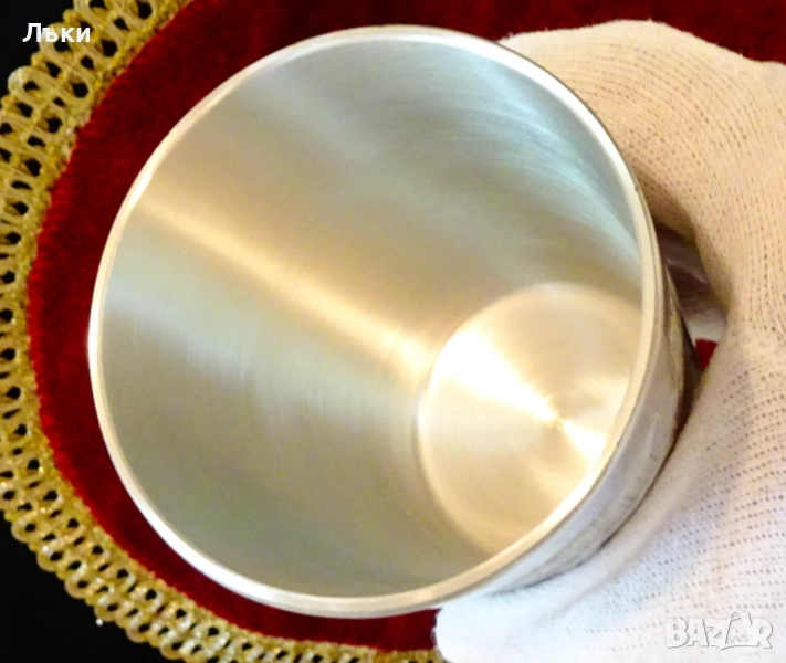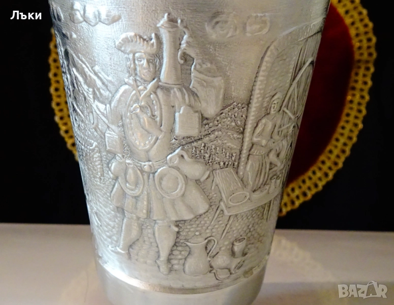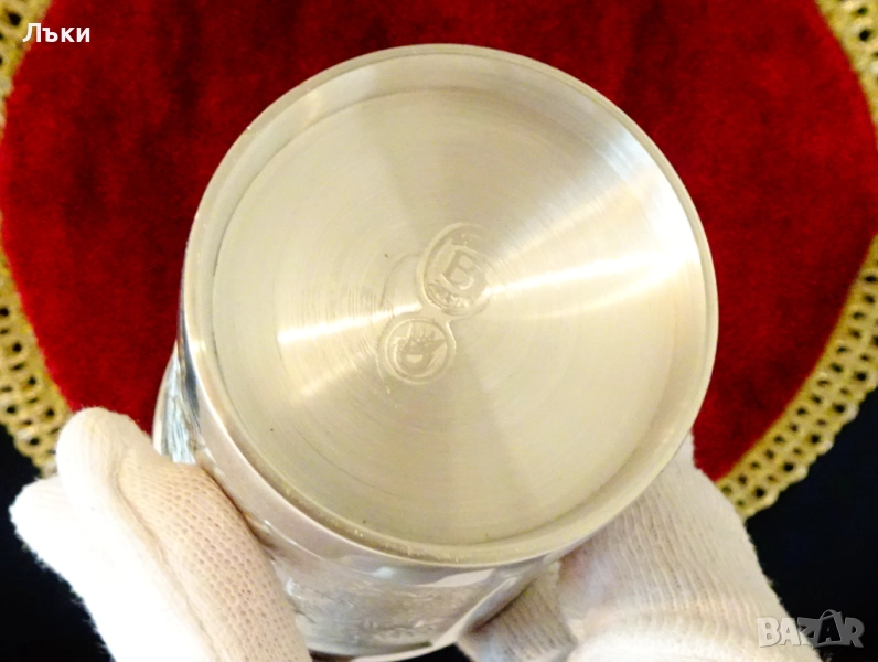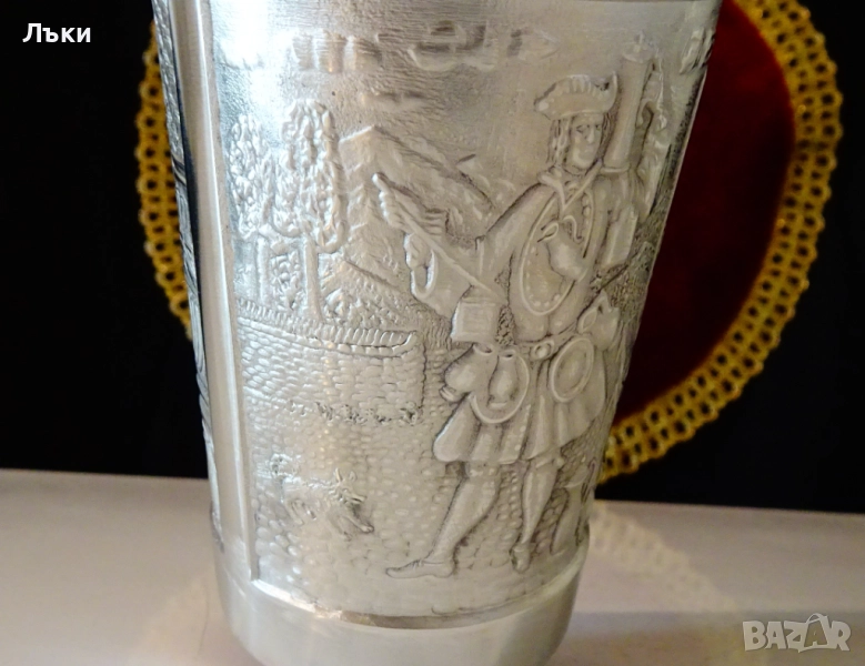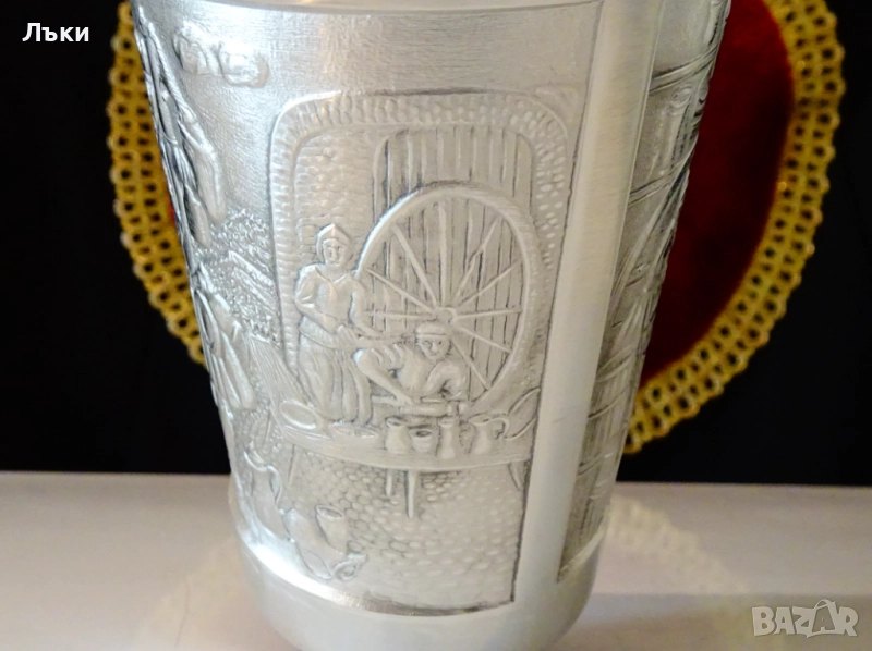 изработка от 95% калай и 5% сребро,маркирана от производителя.Декорирана с