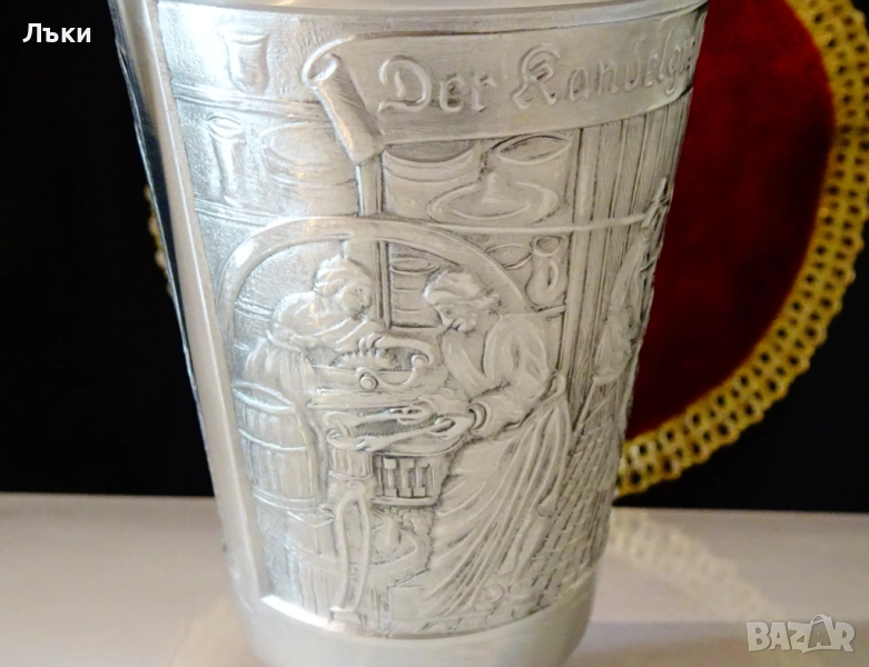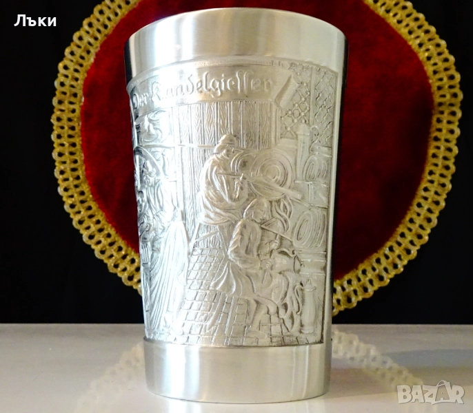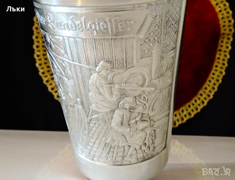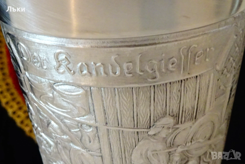 Старинна немска калаена чаша,халба,майсторска ръчна