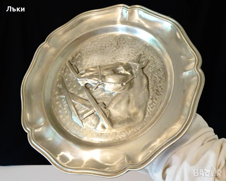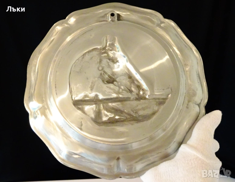 Старинна немска калаена чиния за стена,пано,майсторска ръчна