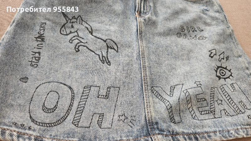 Много забавна дънкова пола с рисунки Zara, размер 122 см.