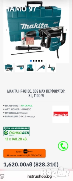 Продавмам комбиниран перфоратор на Макита с потенциометър за регулиране на оборотите и мощността. Машината е в отлично визуално и техническо състояние, Made in UK внос от Франция. Продава се така както си е на снимките машината с 2-те ръкохватки, 2 шила, 2 свредла и оригинален куфар. Пращаме с опция преглед и тест с куриерска фирма еконт или лично предаване за гр. Шумен. Магазинската цена е: 1 620лв.