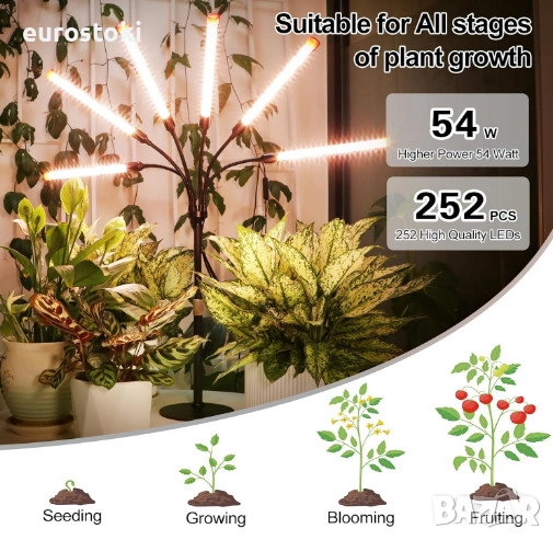 Ултра-ярка настолна LED лампа за растения. Оборудвана с 252 висококачествени светодиода и пълноспектърна светлинна мощност от 54 W, тя осигурява оптимално осветление, което подпомага здравословния растеж на растенията.