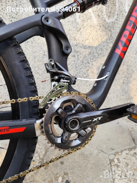 мекица Kreidler Fast Forward stud 4.0 carbon 29'. Размерът е Л-ка, а състоянието е визуално много добро. Има надрасквания от дясната част, поради превоз, с които е съобразена цената. Техническото състояние е също така много добро. Единственият проблем е лека кривина в задната капла. В момента е с нови плочи, касета и верига а гумите са с вътрешни гуми (има опция за тюблес). Предлагам линк към сайт с цена за ново по време на продажбата на този модел: https://kreidler.pl/katalog/kreidler-stud-fs-4-0-shimano-xt-2x11-disc-rower-gorski/ В следващите редове представям компонентите: