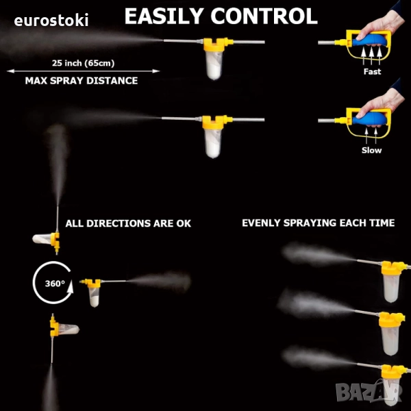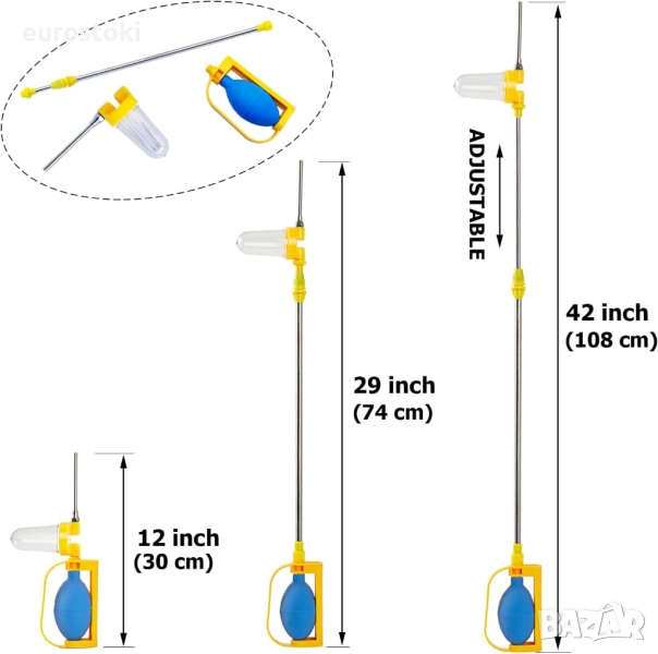 Тази пръскачка за прах е с регулируема дължина, може да се удължи от 30 см до 108 см, което ви позволява лесно да достигате до по-високи места, без да се налага да се навеждате, за да стигнете до земята, което я прави по-лесна за употреба.