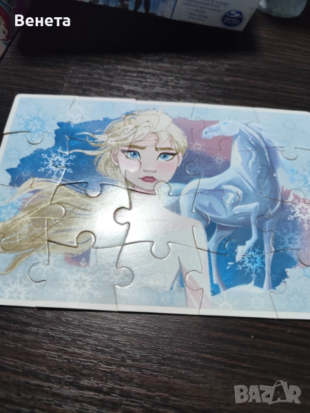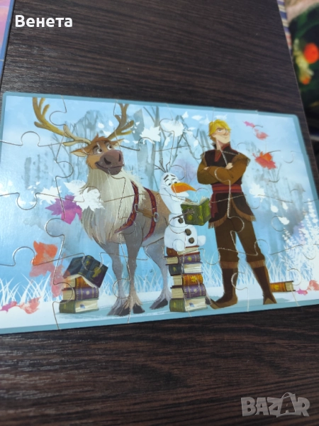 Дървен пъзел Леденото кралство -като нов в кутията са 4 пъзела.Цената е 15 лв.