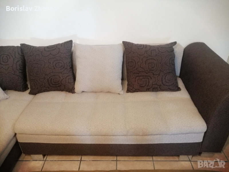 Ъглов диван, който лесно се превръща и в легло. Голяма ракла под едната част с повдигащ механизъм и втора под другата част. Достатъчно допълнителни удобни възглавници. Удобен и запазен диван. Намира се в град Червен Бряг.
