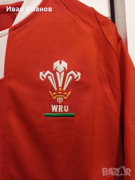 Оригинална ръгби фланелка на националния отбор на Уелс в перфектно състояние, не е обличана никога, само е съхранявана. Закупена е от Милениум Стейдиъм - националния стадион на Уелс, където играят своите мачове по ръгби. Всички етикети, серийни номера и Q-ар кодове са налични. Размер L.