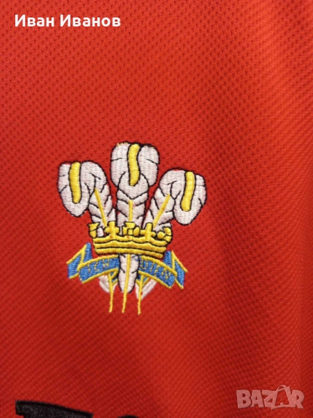 Оригинална ръгби фланелка на националния отбор на Уелс в перфектно състояние, не е обличана никога, само е съхранявана. Закупена е от Милениум Стейдиъм - националния стадион на Уелс, където играят своите мачове по ръгби. Всички етикети, серийни номера и Q-ар кодове са налични. Размер L.
