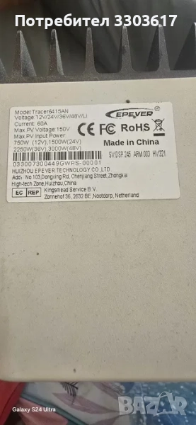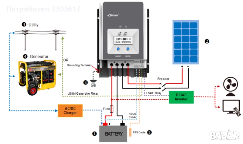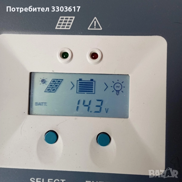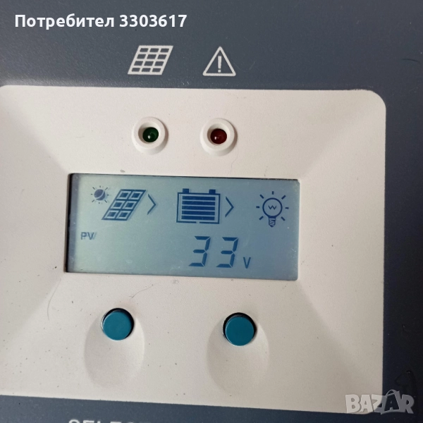 Използван .Тестван със соларни панели с общо напрежение 30V и AGM акумулатор 200AH