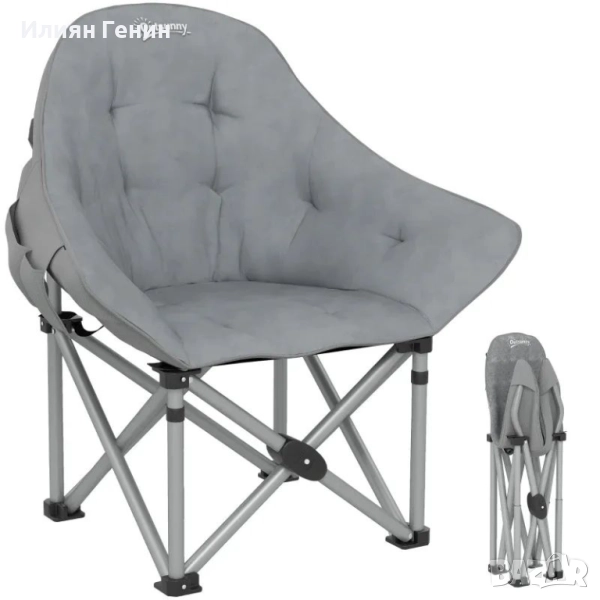 Повишен комфорт при сядане: Оборудван с калъф от изкуствен велур и изключително дебела подплата от пяна, този сгъваем стол предлага изключително удобни и поддържащи места за сядане при къмпингуване и пикници.