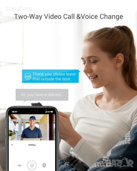 Гласова поверителност и безкрайни опции за мелодии: Притеснявате се, че непознати ще разпознаят гласа ви? Безжичната врата с камера CP4 предлага функция за промяна на гласа, за да запази поверителността ви. Можете уверено да общувате с посетителите, като същевременно защитавате самоличността си. Освен това, избирайте от широка гама от мелодии, за да създадете перфектната атмосфера за вашия дом.