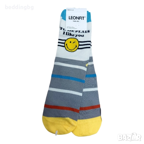 Чорапи с усмивка и надпис "I like you": един от чифтовете е с райе и надпис "I like you".