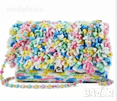 Ръчно изработена чанта CANDY за рамо в бонбонени цветове от мека прежда.