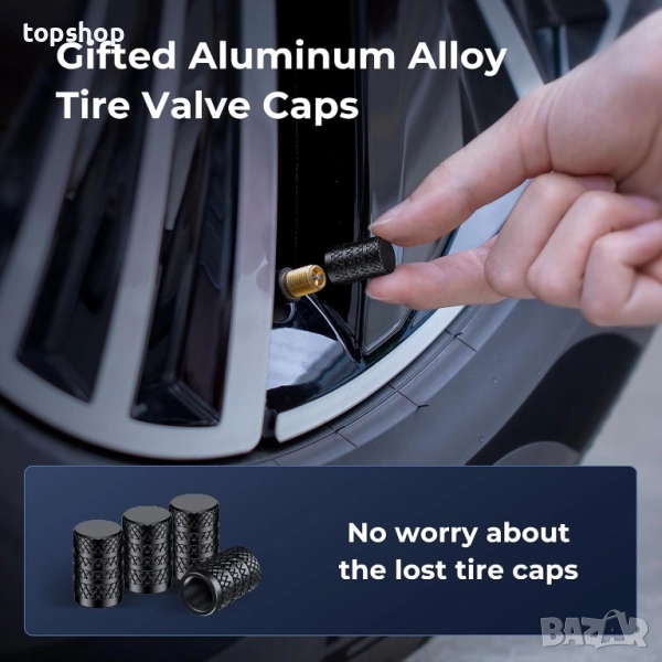 Подарени капачки за вентили на автомобилни гуми: Предлага се с пълен набор от аксесоари, включително множество дюзи за напомпване и 4 висококачествени капачки за вентили на автомобилни гуми от алуминиева сплав.