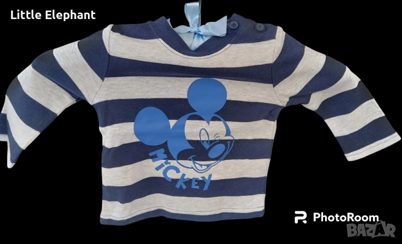 Блузка с дълъг ръкав за 3-6 месеца райе синьо и сиво"Disney",Мики Маус,Англия/нова → Обява 51707606