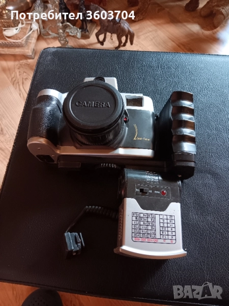 винтидж фотоапарат ретро с лента абсолютно изправен работи в оригинална чантичка един хубав предмет от миналото който е фотолюбител ще го оцени цената е приемлива работи може да го ползва да снима с него може за колекция може за подарък кой както сметни за Добре благодаря ви за вниманието Разгледайте и другите мои обяви