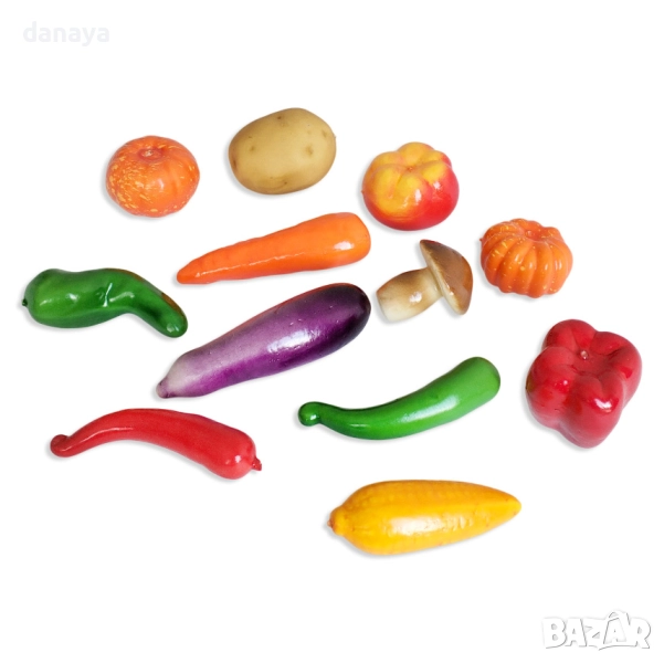 Комплект мини изкуствени зеленчуци за декорация, 12 броя