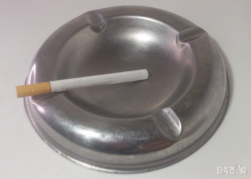 7. Голям метален пепелник със следи от употреба.