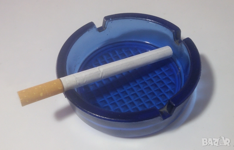 5. Малък стъклен кръгъл син пепелник