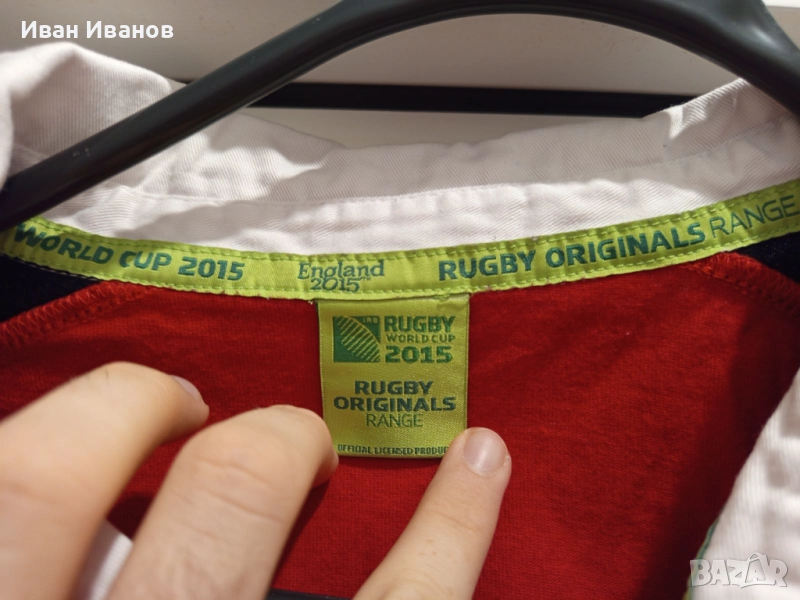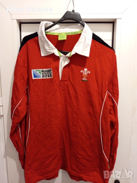 Оригинална фланелка на националния отбор по ръгби на Уелс - официалния екип на отбора за Световната купа по ръгби 2015 в Англия. Фланелката е в перфектно състояние, не е обличана никога, само е съхранявана. Закупена е от Милениум Стейдиъм - националния стадион на Уелс, където играят своите мачове по ръгби. Всички етикети, серийни номера и Q-ар кодове са налични. Размер ХL.