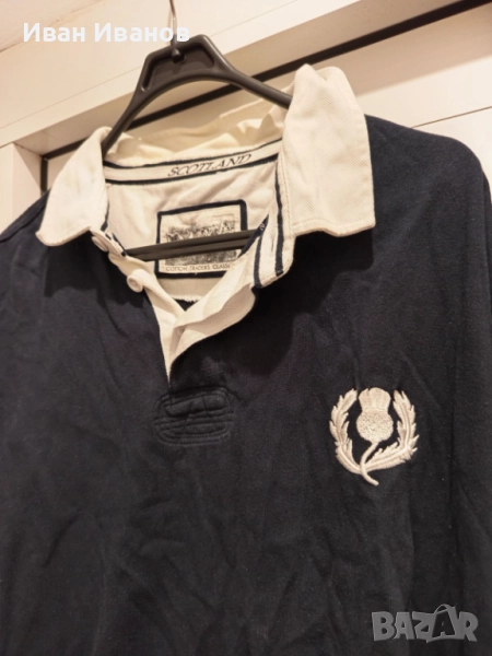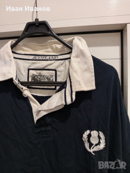 Оригинална фланелка-домакинския екип на националия отбор по ръгби на Шотландия през 1987г. в перфектно състояние! Никога не е слагана, само е съхранявана - всички етикети са налични. Фланелката е закупена през 90-та година от Murrayfield Stadium - националния ръгби стадион на Шотландия в Единбург. Размер ХЛ.