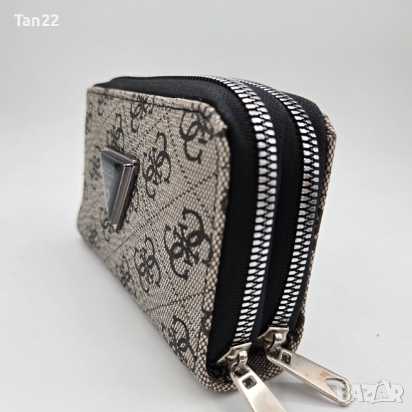 Кожено марково портмоне GUESS в черно и бяло с две разделения и отделение за стотинки