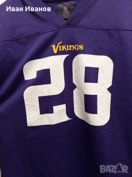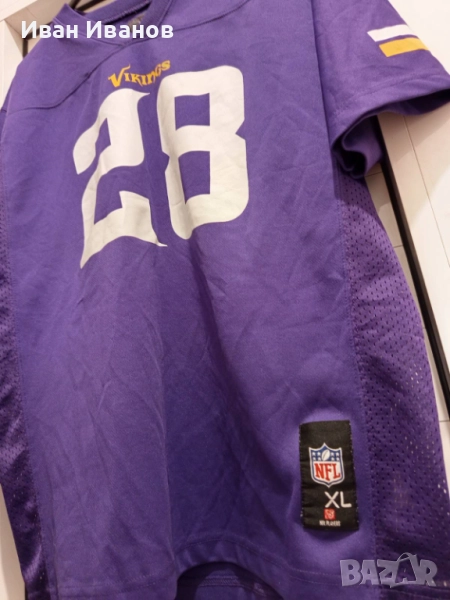 Оригинална фланелка на Minnesota Vikings на великия Adrian Peterson в перфектно състояние, всички етикети и серийни номера са налични. Закупена е от U.S. Bank Stadium - стадиона на Викингите в Минеаполис. Размер ХЛ.
