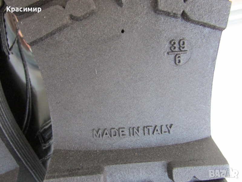 N:13 Дамски боти OASIS, в черен цвят и хромирана катарама с каишка отпред за декорация. Закопчаването е с връзки отпред и цип отстрани. Височината им е 16 см, а на тока 3 см. Номер 39 с дължина на стелката 25 см. Произведени в Италия. Разполагам с 2 чифта.