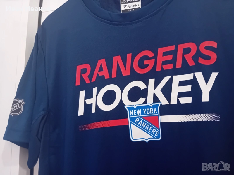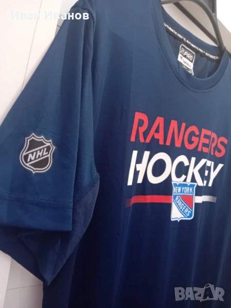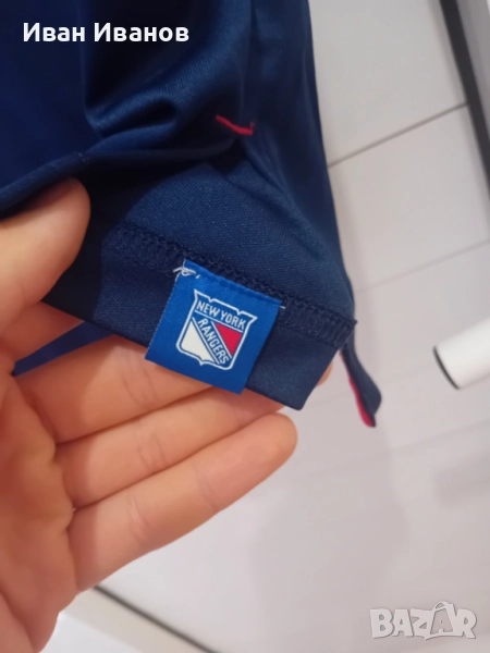 Оригинална тениска на New York Rangers в перфектно състояние. Не е носена, само е съхранявана. Всички етикети и серийни номера са налични. Закупена е от феншопа на Медисън Скуеър Гардън(залата на Рейнджърс). Размер Л.