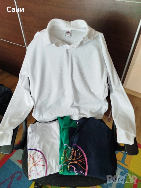 НОВИ- Зелена и тъмно синя с дълъг ръкав. Снимките за малко лоши, но цветовете много наситени не са избелели. Реално са изпрани и закачени на закачалки, така и не стигнахме до тях.